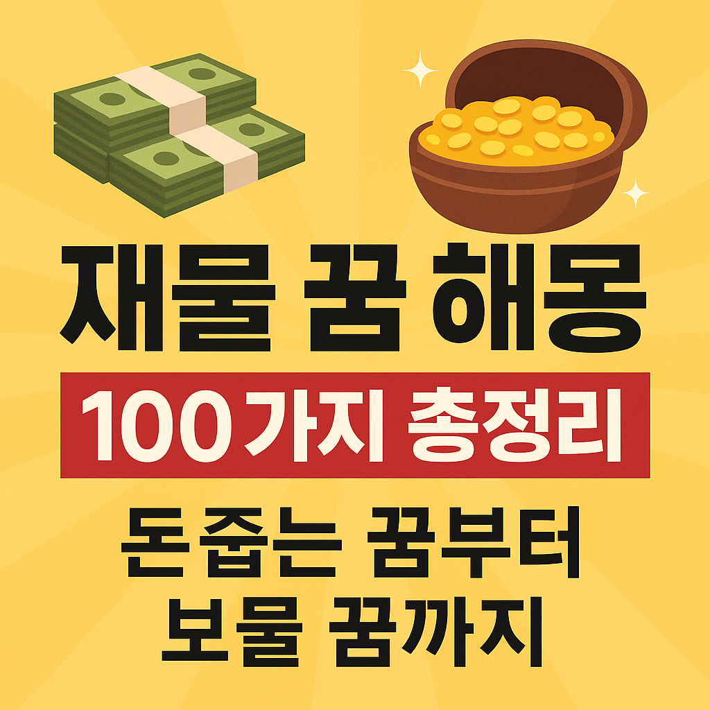 재물과 관련된 꿈은 누구나 관심을 갖는 대표적인 길몽 주제입니다. 아래 리스트는 유형별로 정리한 100가지 상황과 한 줄 요약 해석입니다. 검색과 가독성을 위해 제목과 소제목은 H태그+굵게 처리했고, 티스토리 지침에 맞춰 구성했습니다.